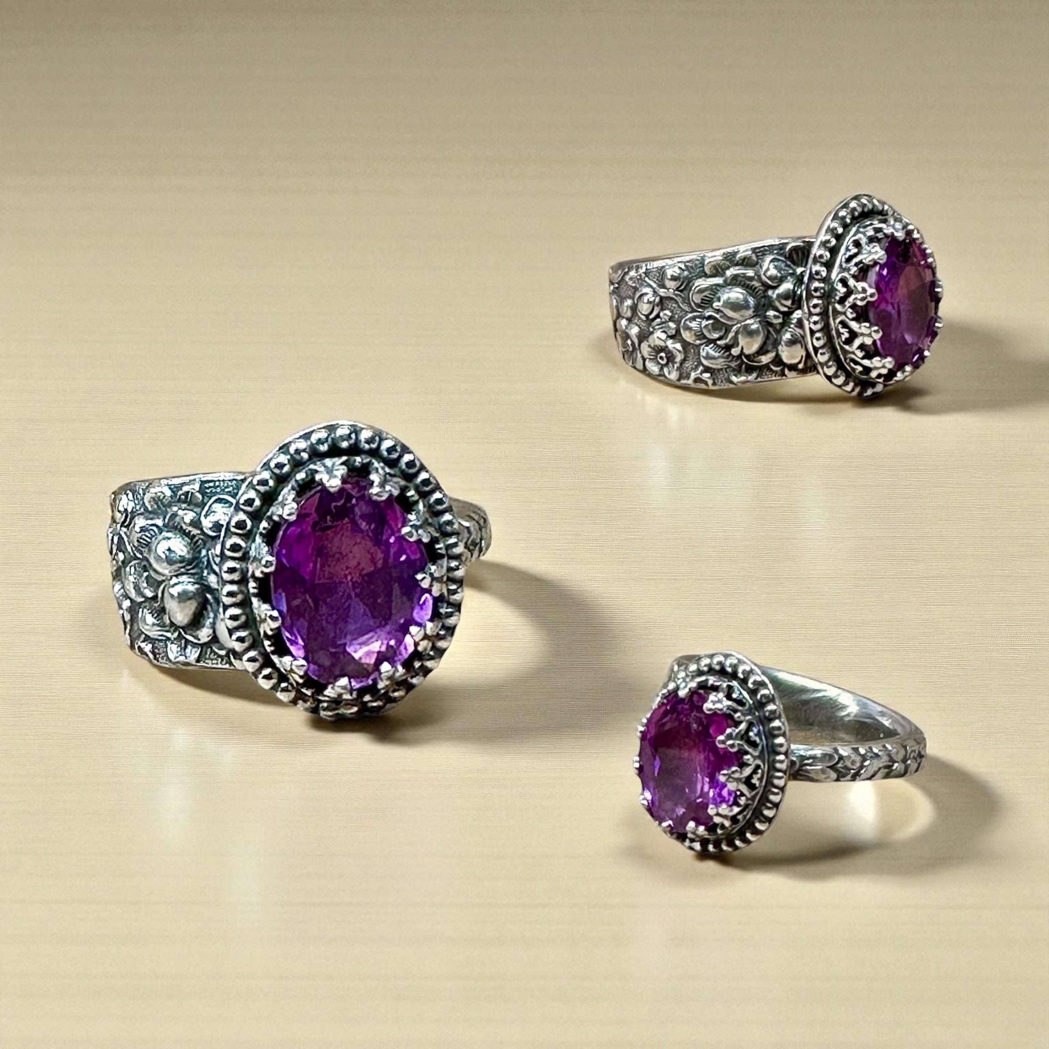 A beautiful and unique faceted Pink Zircon gemstone and Floral Repousse sterling silver ring .  Zircon is a beautiful natural stone with high refractive qualities creating lots of sparkles . The sterling silver Repousse ring band features roses and wraps around your finger in a tapered design .  Ring is SIZED TO ORDER for a perfect fit . Visit our Instagram and Facebook page to see this beautiful ring in a video